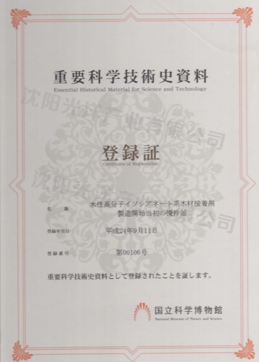光洋產業的KRBOND被日本國立科學博物館收錄于《重要科學技術資料》中